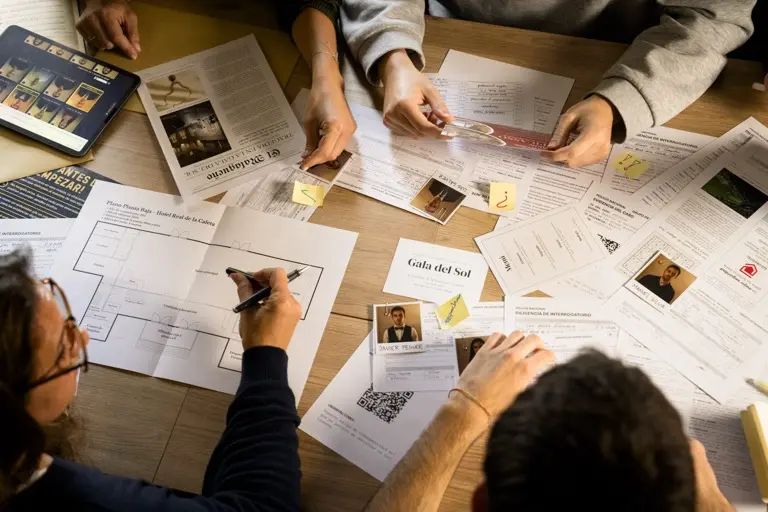Juego de mesa tipo escape room para jugar en casa. Recibe un sobre lacrado con pruebas físicas reales y resuelve el misterio usando recursos digitales. Creado en Málaga. Desde 1-10+ jugadores (sin límite), 2-3 horas.